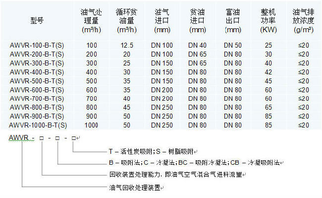 吸附+吸收油氣回收裝置設(shè)備選型: